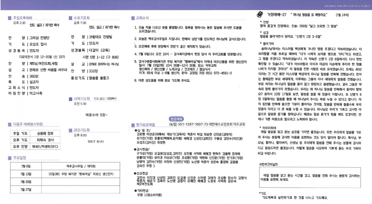 덕두교회 주보